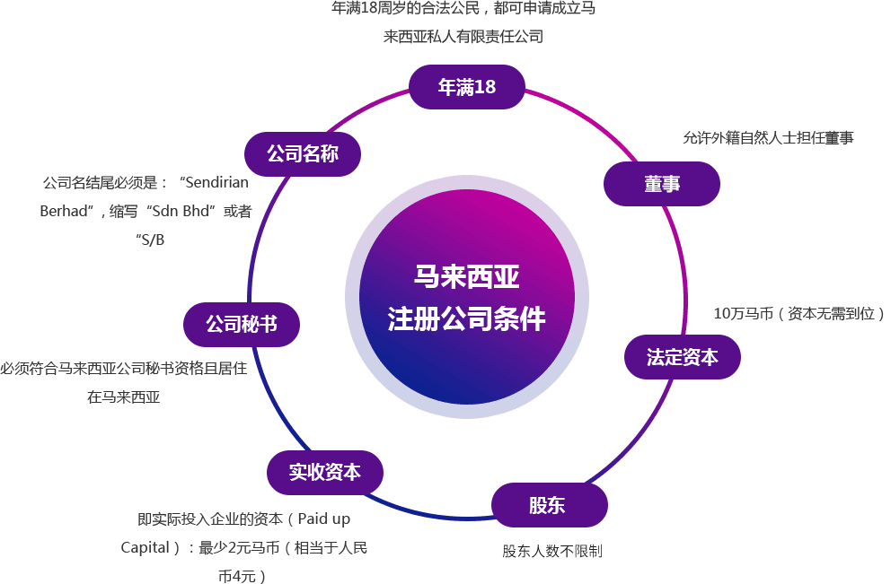 拟定马来西亚公司注册英文名称;至少1名董事、股东的护照复印件或者身份证复印件、股份分配、委托书、章程、公司设立的目的及主营项目等。
